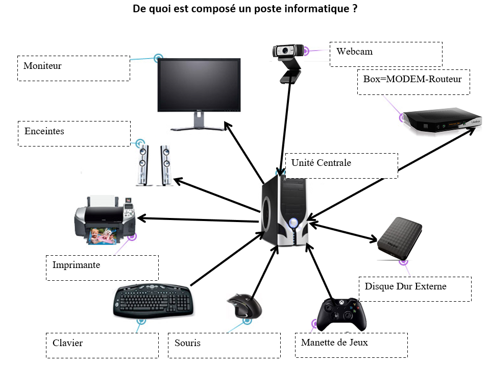 BILAN : Chaque périphérique est relié à l’unité centrale et envoie, reçoit ou échange des données avec celle-ci.
